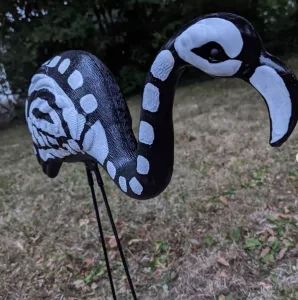 One thing I LOVE LOVE LOVE is kitschy yard decor. Pink flamingos have always been my jam. So when I spotted this fantastic DIY vintage pink flamingo turned skeleton, the Florida girl in me was absolutely smitten. It’s easy to do, and a bit of glow-in-the-dark paint on these feathery beasts would go a long way to make the yard extra scary!
