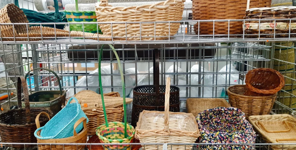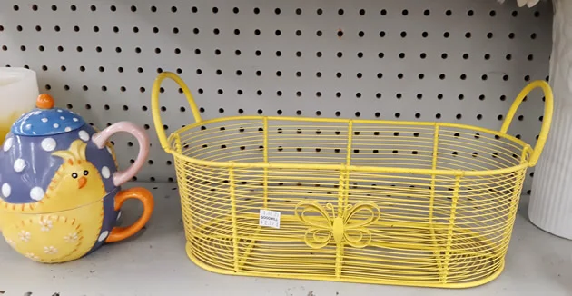 This popular nursery rhyme really sums up the excitement of getting an Easter basket. Surprise someone special with a basket full of goodies. You can even put little notes inside plastic eggs instead of candy. We found a treasure trove of baskets at our Goodwill — so many different styles and sizes starting at $1.99 each. This yellow wire basket was just $2.99.