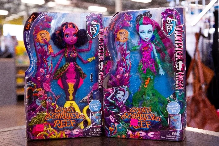 How about some Monster High action figures? These are from the Great Scarier Reef collection…and they glow in the dark!